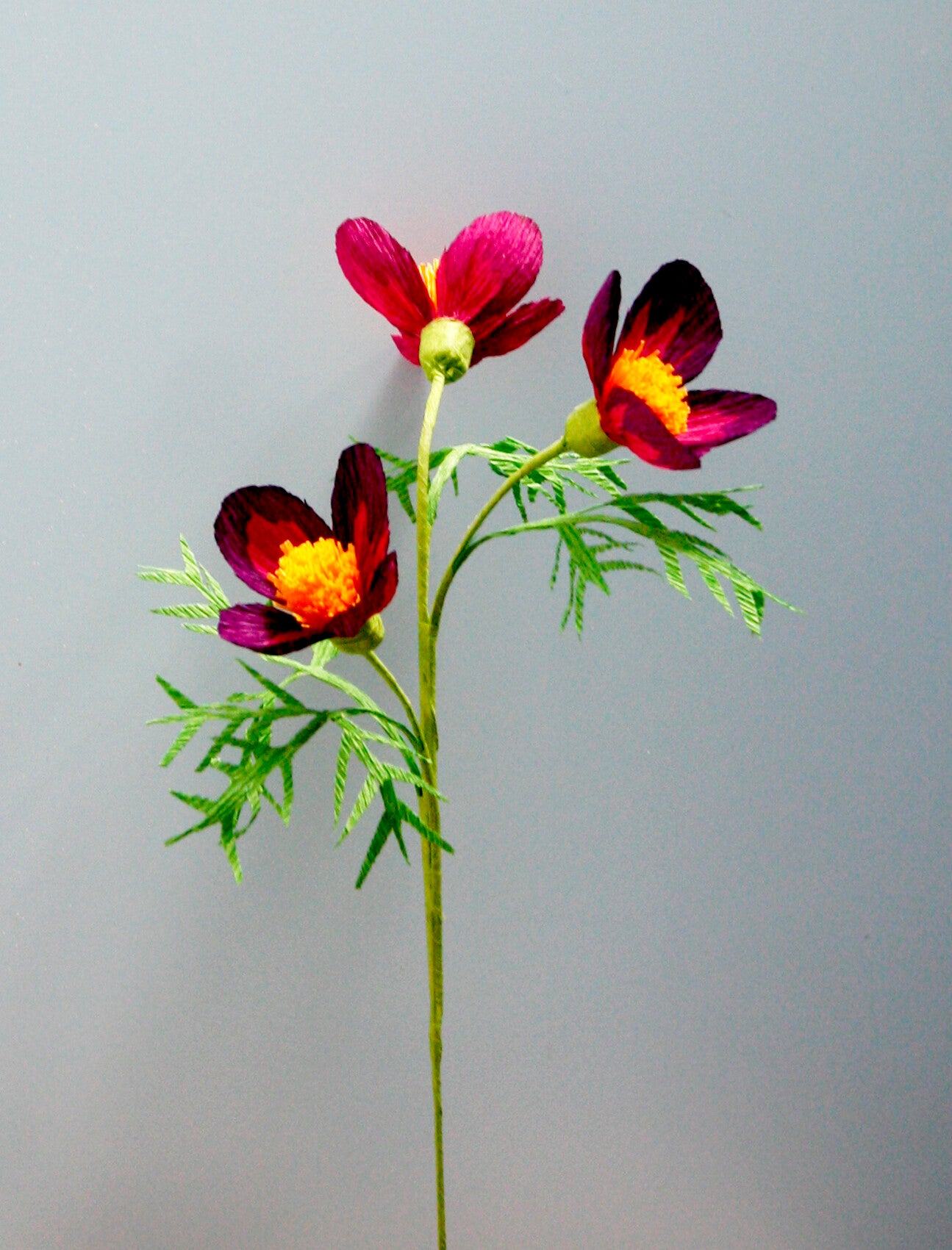 De viole is in vorm een eenvoudige bloem. Doordat de bloembladeren zijn geverfd met inkt en de bladeren aandacht vragen, vormt het geheel een mooie balans van eenvoud en elegantie.