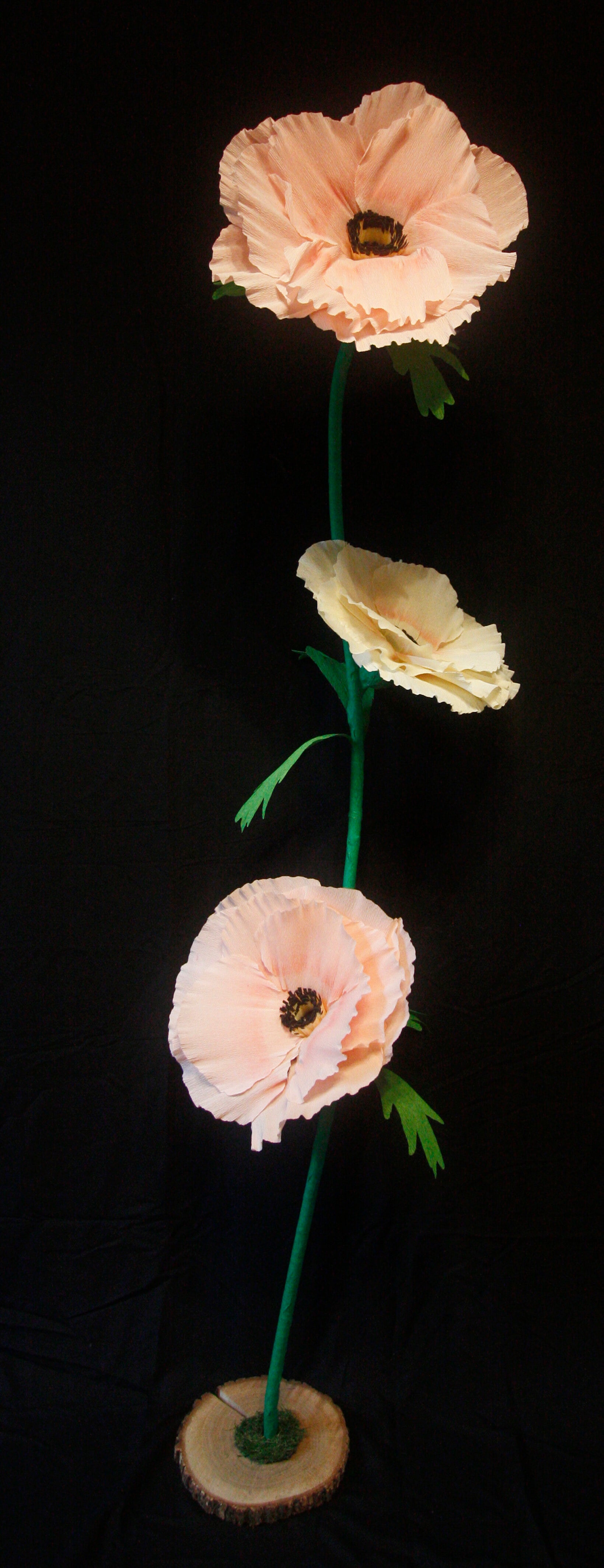 Een mooie bloemenset met drie grote bloemen. Elke bloem heeft een doorsnede van ongeveer 30 cm.